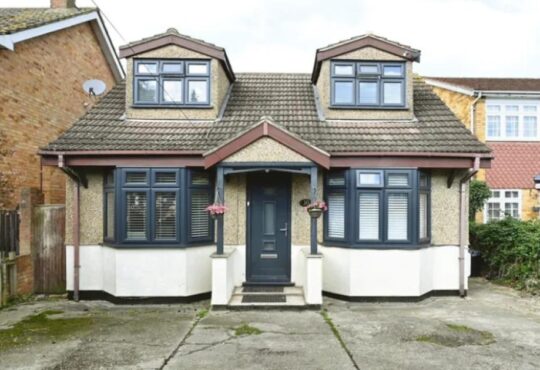 Doors lead to a deck on the roof of the kitchen, in an extension on the floor below.