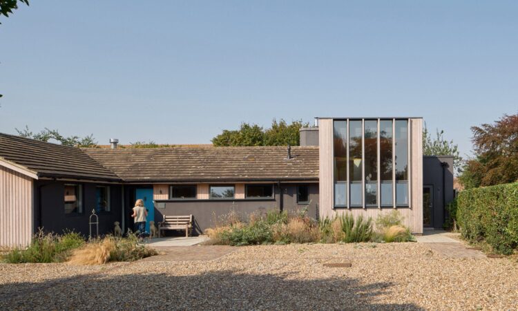 British studio Mole Architects has overhauled the Stone’s Throw bungalow on the coast of Suffolk, adding a timber-framed extension containing sunny south-facing living spaces.