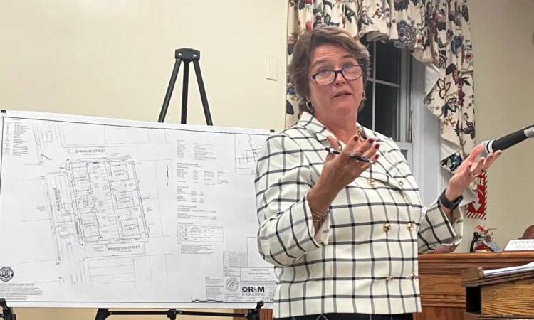 The roughly two dozen residents who spoke mostly said they were not against the land being developed as rental townhomes, but were concerned about the number of units, garbage collection, potential for increased traffic on residential Syracuse Street and whether the development was far enough away from neighboring residential homes on Syracuse and Princeton Streets according to town code and water usage.