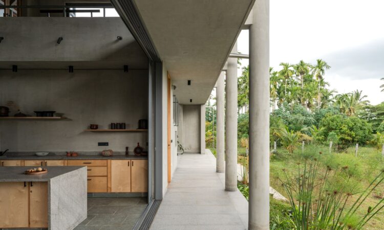 The Bangalore-based firm designed the House by the Grove to be a ‘synergy between people, space, and nature’, thanks to its use of open verandas and walkways, with living spaces raised up above the surrounding landscape.